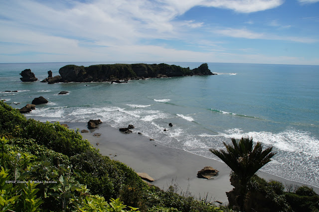 We did stop in Punakaiki, to look at the Pancake rocks and blowholes. It used to be a sea bed, and under the weight of the new layers, or for some other reasons layers of sandstone were interlaid with thinner mudstone. Some millions years forward, erosion and ta-daaa.